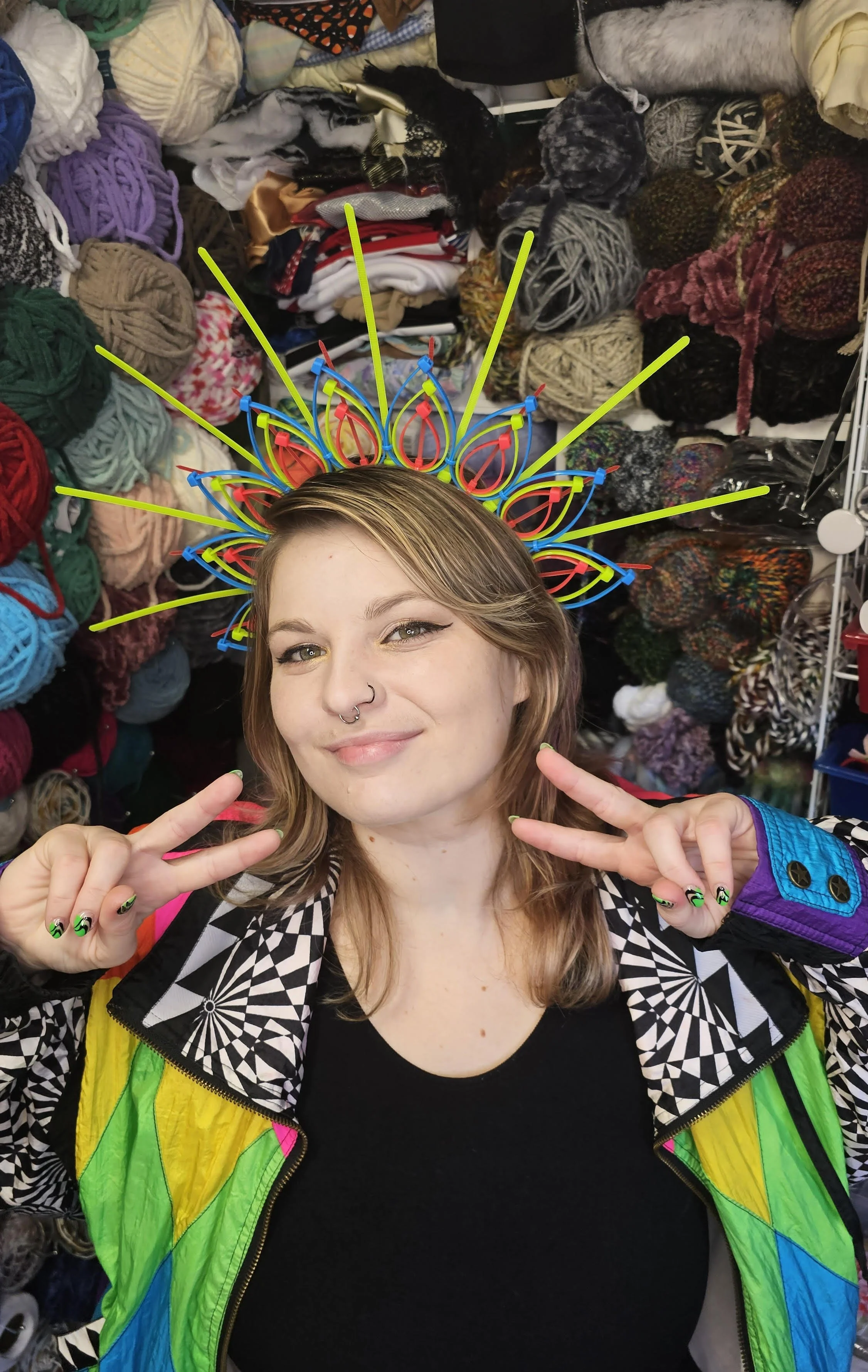 Caitlin is a multidisciplinary artist with a background in scenic, prop, and costume construction for theatre and emersive entertainment. Caitlin is a queer neurodivergent artisan, who's style tends to lean towards the loud and bright, cute and fun, and just a touch of the weird and unusual. She loves working in most mediums, but favors fiber and assemblage arts.