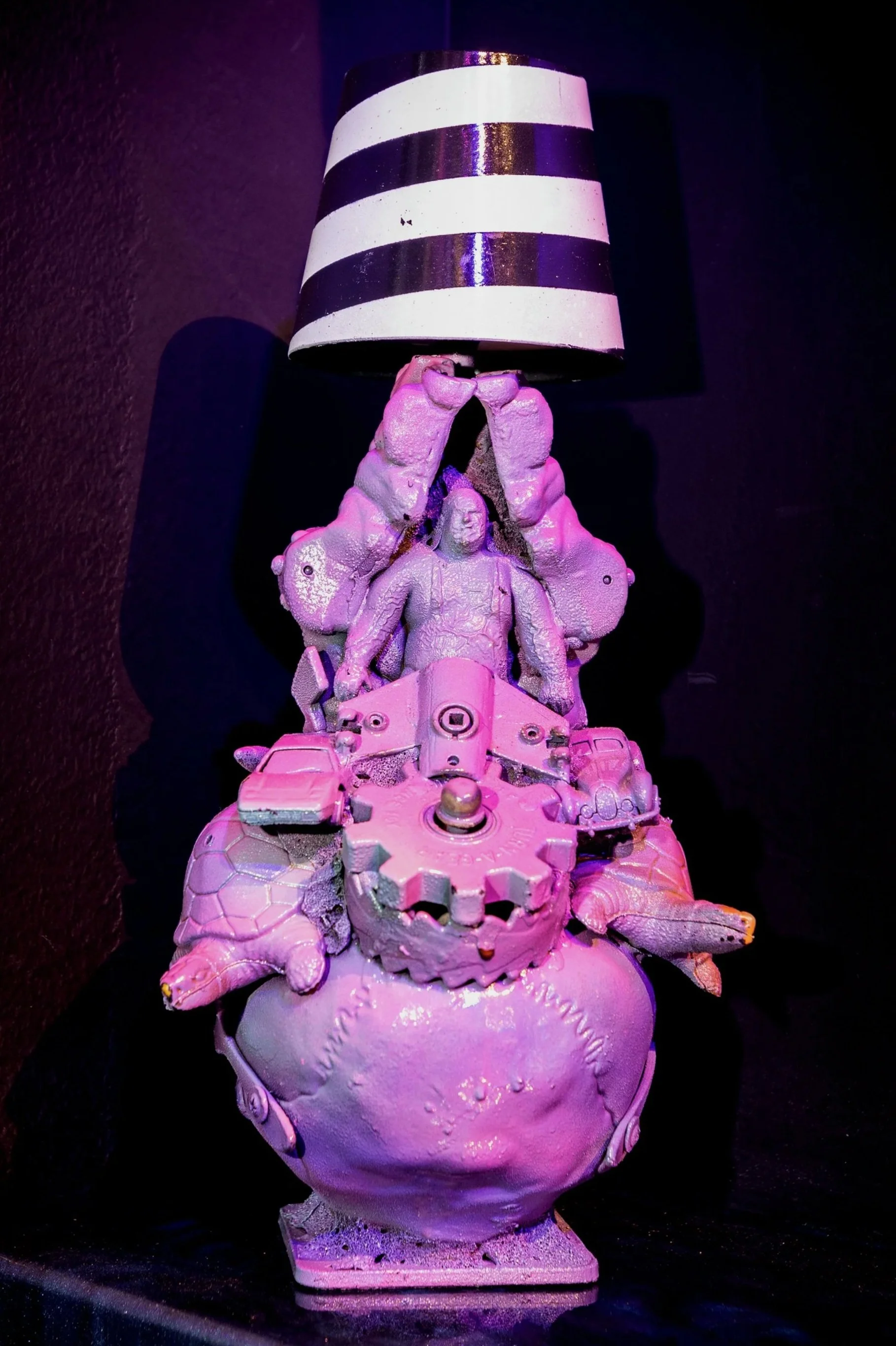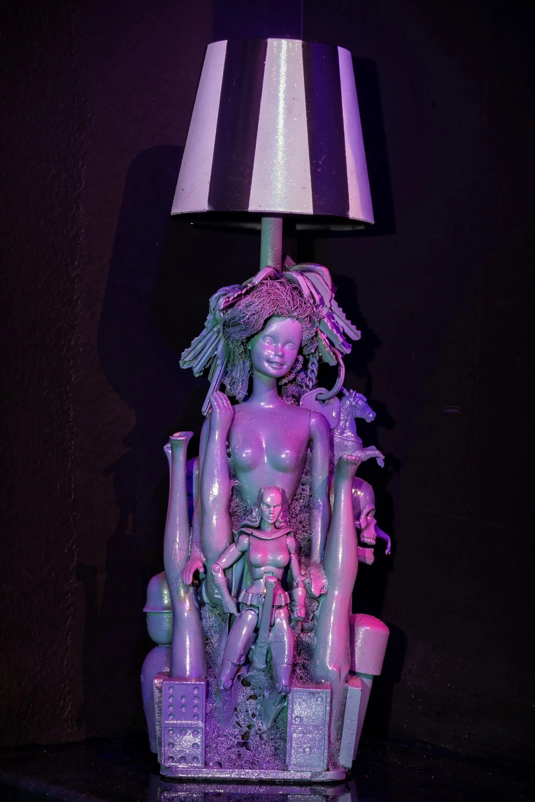 These statues are created from keepsakes gathered by the captain of the dead sea as payment for passage through Endless Bummer. Maybe some shades, car keys, a keychain, a doo dad, a finger bone, an eyeball…Anything really. The Captain adds them to his collection, and creates a lamp of vacation-illumination.