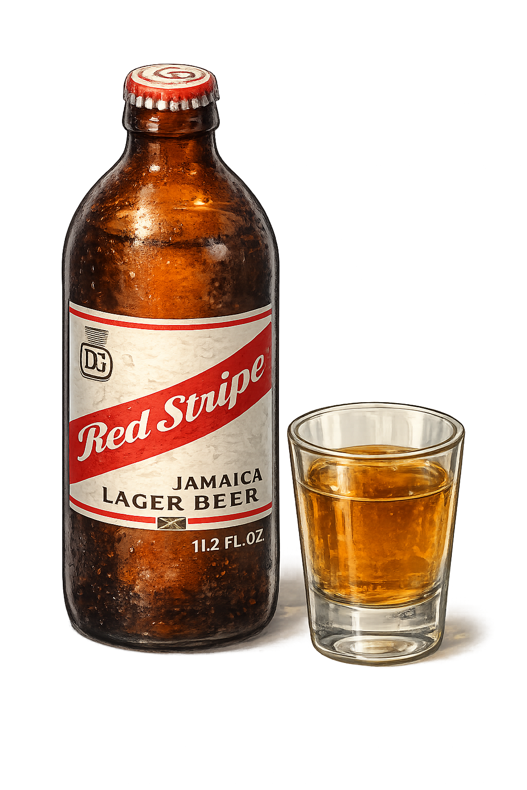 Red Stripe and a shot of Jamaican Rum