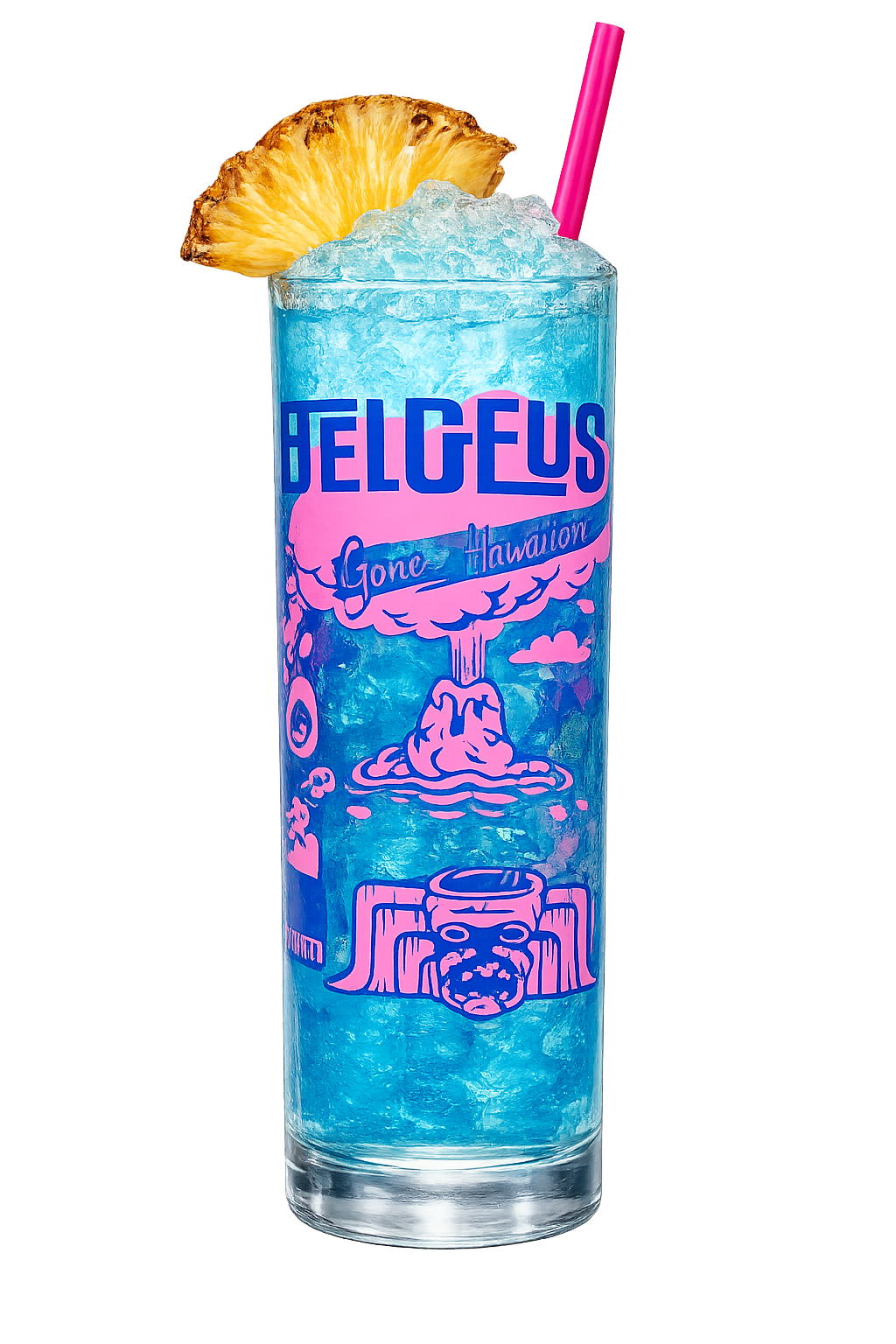 Coconut rum, white rum, blue curacao, pineapple, real grenadine