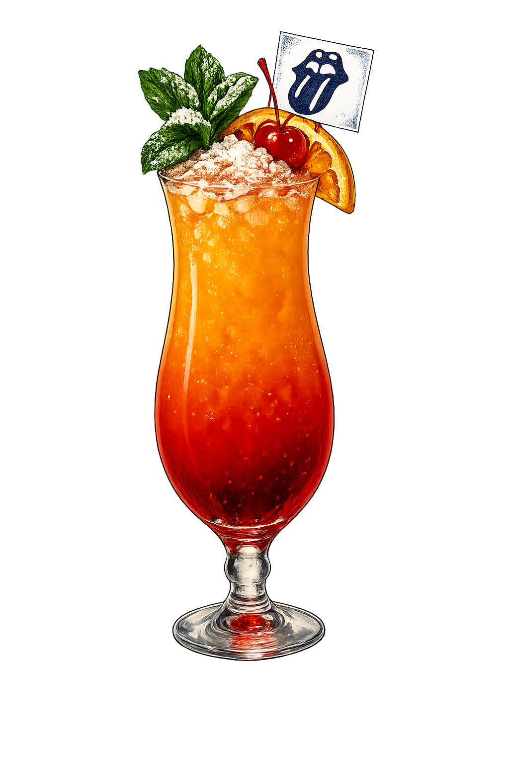 Overproof, Jamaican, and 151 rums, grenadine, passion fruit, lime, orange, falernum, absinthe, Angostura