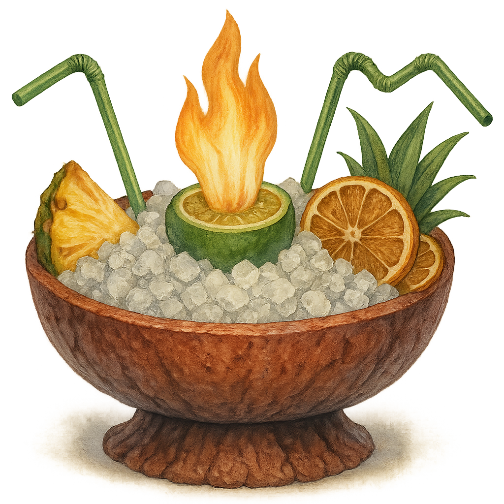 Dark rum, overproof rum, Jamaican rum, 151, pineapple, passionfruit, lime, activated charcoal, cinnamon, fire (Serves 2-4)